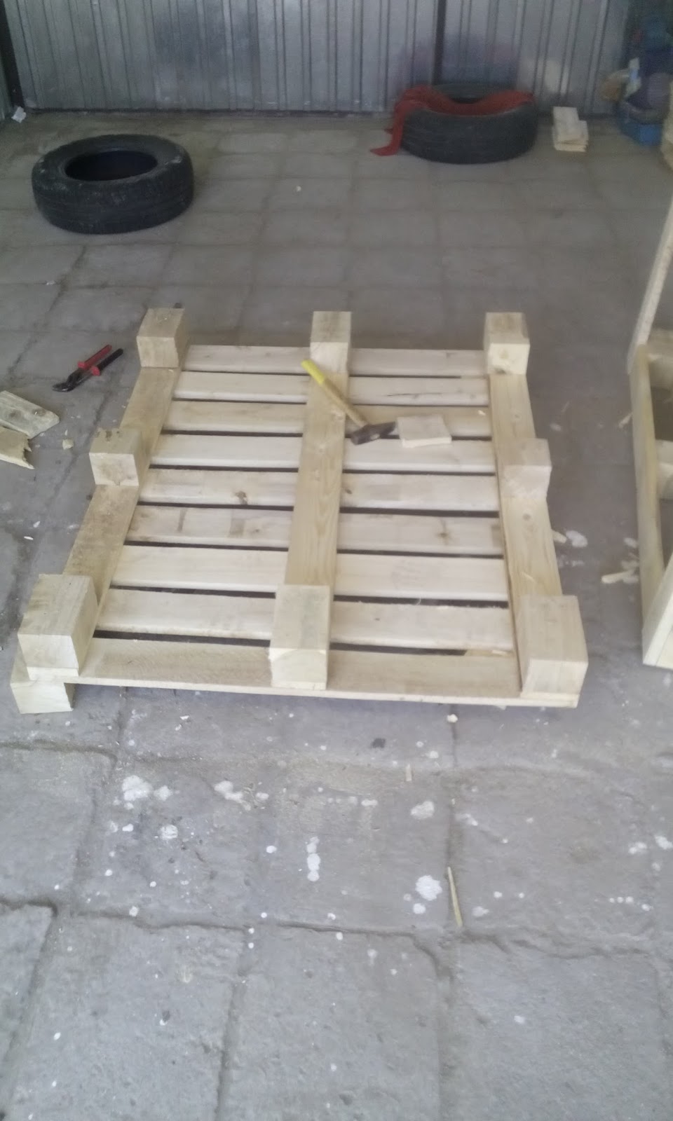 Mój aranżer znalazł coś co spełniało założenia projektu i o dziwo nawet miało sens na to aby po przeróbkach wyglądało jak stolik,była to paleta tzw.angielka wymiar to 1200x1000 mimo że większa od euro to jej układ odeskowania pozwolił na uzyskanie lepszego efektu końcowego.Pozyskać ją można z różnych miejsc koszt mniejszy niż palety euro.